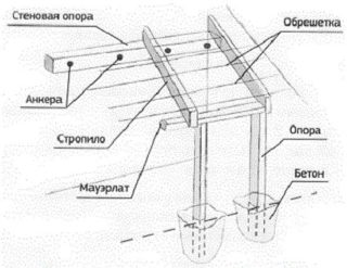 Si la canopée a des dimensions importantes (largeur à partir de 5 mètres, longueur à partir de 10), il vaut la peine de faire appel aux services de spécialistes pour effectuer des calculs. Dans de tels cas, des algorithmes de calcul complexes sont utilisés, prenant en compte les caractéristiques du sol, ainsi que la quantité de neige et de pluie qui tombe dans la région à différents moments de l'année.