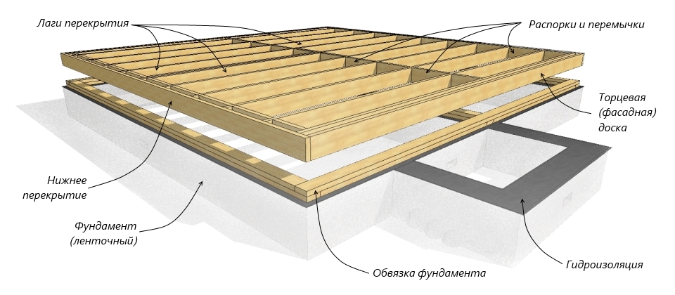 - La Fondation. En règle générale, il s'agit d'un cadre en bois assemblé à partir d'une barre de 150-200x50 mm. Des produits de type massif ou collé sont utilisés, principalement à partir d'essences de bois de conifères.