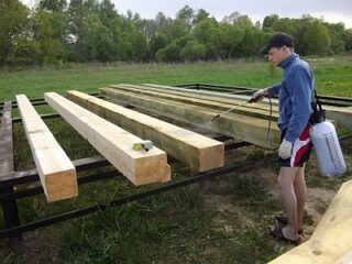 - Les poutres de plancher doivent être recouvertes de produits ignifuges ou d'un autre produit d'imprégnation. Les bords du bois nécessitent un traitement soigneux. Appliquer 2-3 couches d'apprêt.