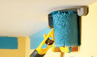 Vous pouvez peindre sans échafaudage ; pour cela, des buses de rallonge sont vendues sur la poignée du rouleau.Le danger est qu'il est difficile de voir les erreurs à cette distance, ou de les remarquer lorsque la peinture est déjà sèche.