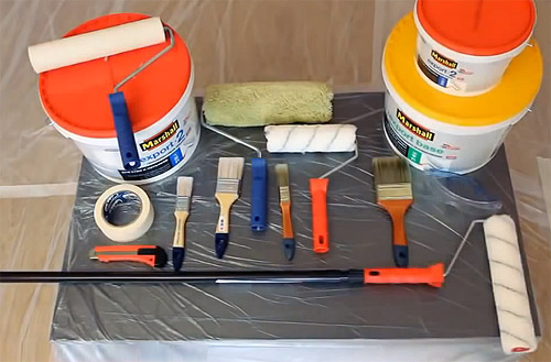 À partir des matériaux, vous aurez besoin de terre, de peinture. La préparation est faite avec du mastic, la première est égale à de grandes différences et l'option de finition est utilisée pour la couche finale. Le travail est effectué à partir d'un escabeau ou d'un échafaudage, vous pouvez utiliser une table.