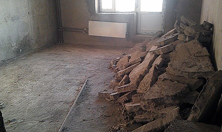 - Démontage de l'ancien revêtement. Nettoyage de la base, son inspection afin d'identifier les défauts - fissures, fissures, trous, moisissures, taches de peinture et de graisse.