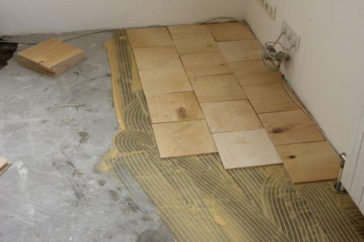 La pose du stratifié sur du contreplaqué est possible avec une épaisseur de 16-21 mm en une couche ou de 8-10 mm en deux couches.