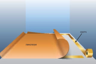 - coupé au couteau, tout en laissant de petites tolérances pour le retrait du linoléum, des déplacements se manifesteront lorsque l'air de la pièce sera réchauffé;