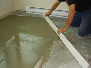 La base est nettoyée de la poussière et nivelée. La différence de hauteur ne dépasse pas 2 mm par mètre linéaire. Les saillies et les nids-de-poule sont supprimés. S'il y en a trop, réaliser la chape avec du mortier de ciment ou un mélange autonivelant.