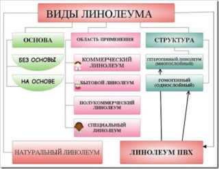Avant de poser le matériau de finition, vous devez comprendre ses variétés et ses caractéristiques. Par type de base, on distingue les types de linoléum suivants: