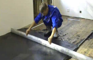 Les décalages doivent être situés par incréments ne dépassant pas 50 cm ; des éléments supplémentaires sont installés si nécessaire. L'espace entre eux est rempli d'argile expansée, qui sert d'isolation thermique et phonique. Une base en bois brut est traitée avec un apprêt antiseptique. Membrane spéciale ou latex, le mastic bitumineux est utilisé comme couche d'étanchéité. Il doit aller jusqu'à 10 cm sur les murs.Les produits d'étanchéité sont appliqués en 2 couches.