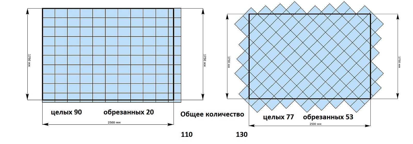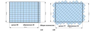 Lorsqu'un nombre fractionnaire est obtenu, il est arrondi. Le matériel doit être acheté avec une marge de 10-15%.Il est nécessaire de remplacer les produits endommagés lors de la livraison ou de la coupe.