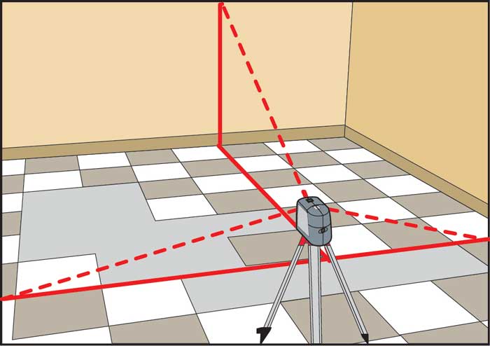 Avant de commencer les travaux, des marquages sont appliqués au sol. À l'aide de cordes, des lignes perpendiculaires sont tracées à partir du milieu des murs; le centre de la pièce sera à leur intersection. Le point de départ est choisi individuellement et l'installation peut commencer à partir de la porte, du coin opposé ou du centre de la pièce. Le point de départ de l'installation dépend de la disposition de la salle de bain. L'un des avantages du matériau est qu'il peut être posé sur le sol et essayé selon le schéma optimal. Sur la base du marquage se fait en rangées. Les experts conseillent de ne pas laisser de détails étroits sur le bord. Il est préférable de couper des deux côtés du rang.