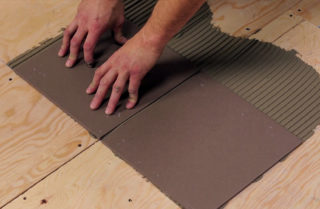 Lors du choix d'un adhésif, tenez compte du type de base. Les mélanges secs universels pour carreaux de céramique et grès cérame des sociétés Monolit, Knauf, Weber, Ceresit conviennent pour une chape en béton, des panneaux de fibres de plâtre et des panneaux de particules liés au ciment. En raison de la structure spéciale du contreplaqué, ces composés ont une mauvaise adhérence. Des mélanges adhésifs élastiques prêts à l'emploi sont recommandés.