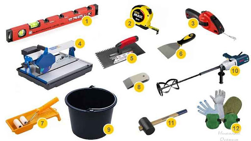 Pour faire face à un sol irrégulier, vous aurez besoin d'un équipement de base : un perforateur avec un fouet ou un mélangeur, un coupe-carreaux, un broyeur et des pinces.