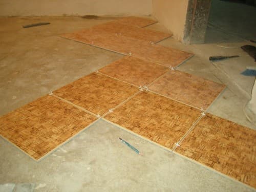 La pose souvent incorrecte est due à une violation du plan du sol. Si un défaut est détecté, ils retournent à la rangée où se trouvait l'erreur et calent les coutures à l'aide d'allumettes ou de croix plus grandes. La poterie est déplacée si la pièce a des coins obliques.