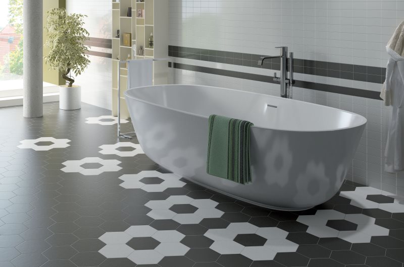 L'humidité dans la salle de bain étant élevée, le motif de coiffage est choisi de manière à obtenir peu de coupes ouvertes et de coutures complexes. Vous pouvez poser du carrelage sur le sol de la salle de bain de différentes manières, mais tenez compte du type de socle (béton armé, chape ou bois dans une maison à ossature).