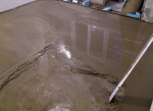 La préparation comprend l'imperméabilisation avant de couler la chape. Le plus souvent, ils mettent du film plastique ou du feutre de toiture. L'alignement est effectué pour réduire la consommation de colle. Sur chaque emballage du mélange, l'épaisseur de la couche est indiquée, qu'il est recommandé de placer sous le carreau. Une fois la chape sèche, la surface est apprêtée pour augmenter l'adhérence des couches.