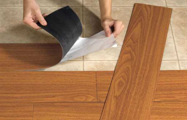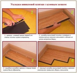 Le revêtement est réalisé sous forme de lattes rectangulaires ou de dalles carrées. Sa différence est l'application d'une couche adhésive sur la base. Avant l'installation, il est protégé par un film spécial. L'installation est simple, mais une préparation de haute qualité de la base est requise.