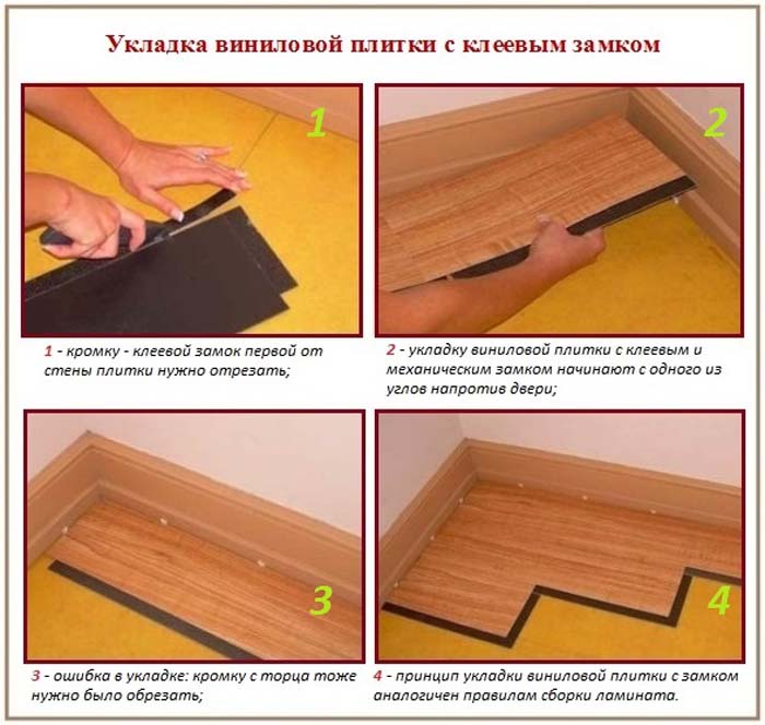 Une fois l'installation terminée, vous pouvez immédiatement installer les plinthes et commencer à utiliser le sol. Avant de commencer le travail, vous devez lire les instructions du fabricant. Différents modèles de stratifié de vinyle ont des exigences particulières pour la fixation à la base et les nuances d'installation, selon le type de système de verrouillage.