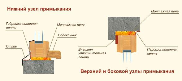 L'installation de fenêtres en bois dans l'ouverture s'effectue des manières suivantes: