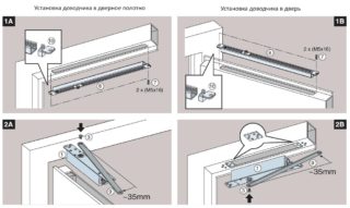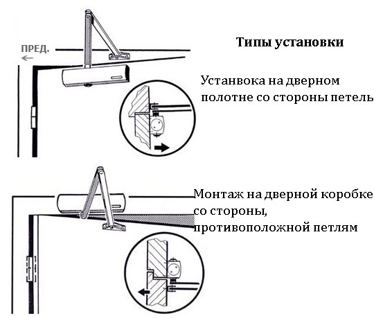 Les contrôleurs de fermeture sont installés non seulement sur les portes extérieures ou intérieures. Ils sont également montés sur des portillons ou des portails. Aux structures d'entrée, elles sont posées sur une toile et un caisson à l'intérieur de l'ouverture. Il existe des modèles résistants au gel, mais il est préférable de préserver le mécanisme de l'action des facteurs météorologiques.