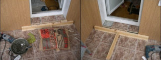 Dans tous les cas, la dalle en béton armé destinée à l'installation de la structure du balcon s'avère plus haute que la dalle de plancher. Dans ce cas, une marche est formée à l'intérieur de la pièce, dont la hauteur dépend de la conception du bâtiment. La disposition du seuil d'origine fournira une protection supplémentaire de la pièce contre la pénétration du froid et améliorera l'apparence de la pièce - elle masquera une couche de mousse de polyuréthane sous le cadre de la porte, etc.