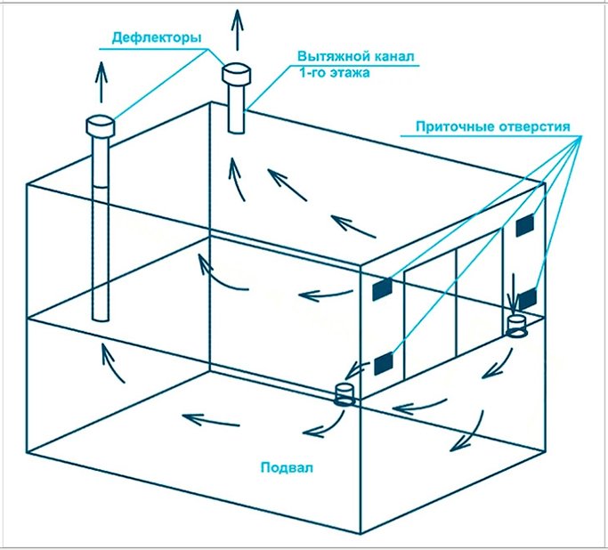 Une ventilation naturelle et un système mécanique de faible puissance peuvent être combinés. Cela garantit un bon échange d'air par tous les temps. Le schéma de la version combinée est similaire à celui naturel, mais comprend un déflecteur dans la partie supérieure du capot et un ventilateur axial. Pour contrôler ce dernier, il est recommandé de régler une minuterie.