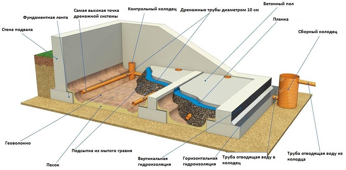 - Le sol est enlevé, une tranchée de 40 à 50 cm de profondeur est creusée autour du périmètre de la pièce.Le trou est creusé à une inclinaison de 3 mm / 1 m.