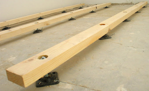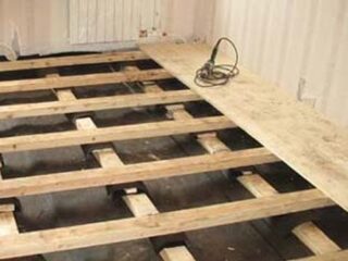 - Installation du sous-plancher. Pour cela, des planches sont utilisées. Cette étape n'est pas toujours nécessaire.