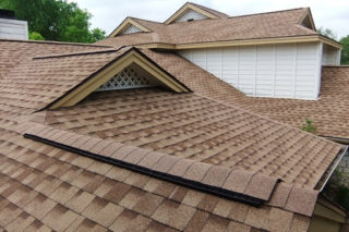 - Installation d'éléments de faîtage. Les éléments doivent chevaucher les attaches de la rangée supérieure de bardeaux.