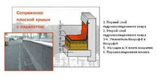 La jonction du toit au parapet doit être munie de plusieurs couches de matériau d'étanchéité au niveau des joints. Il est également installé sur des surfaces verticales. Pour une meilleure protection, parfois une tôle de fer galvanisé est montée sur le dessus. Pour drainer le liquide, des éléments de panneaux en métal traité avec une composition protégeant contre la corrosion sont utilisés.