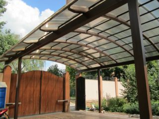 La base est constituée de profilés métalliques, de barres en bois. Il est pris en compte que le polycarbonate se dilate lorsqu'il est chauffé d'environ 4 mm par 1 p / m, ils donnent donc la liberté nécessaire. Les tôles légères sont installées sans élévateurs ni grues. Le polycarbonate durable, grâce aux ponts transversaux dans la structure, ne transmet pas la lumière ultraviolette. Le matériau résistant au feu s'éteint automatiquement en cas d'incendie et n'émet pas de substances nocives.