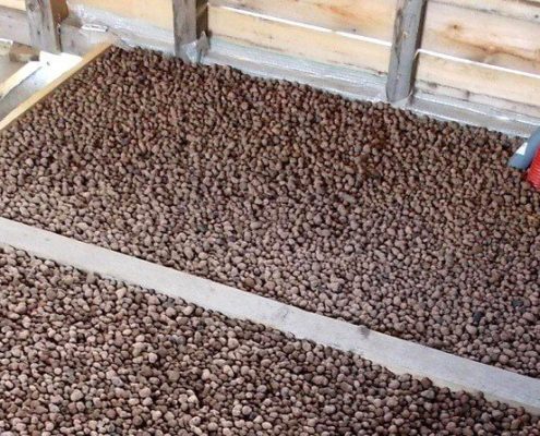 Un moyen simple d'isoler le plafond du côté du grenier consiste à couler une couche de sciure de bois ou d'argile expansée. Ceci est fait si le chevauchement peut supporter une grande masse de matériaux de construction.