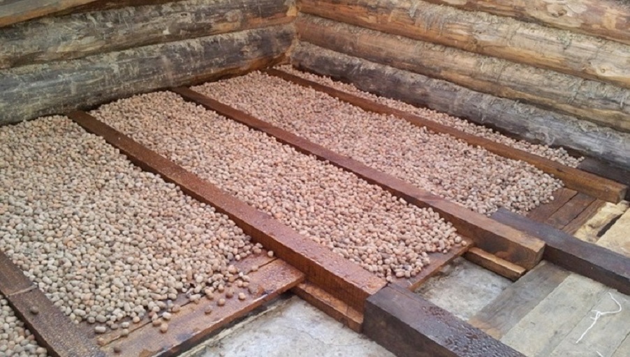 - Sciure. Du matériel naturel et respectueux de l'environnement qui peut être emprunté gratuitement dans n'importe quelle scierie. Possède d'excellentes propriétés isolantes, ne nécessite pas de compétences particulières à utiliser. Les inconvénients de la sciure de bois sont suffisamment importants pour s'interroger sur l'opportunité de leur utilisation. Il s'agit d'un rétrécissement inévitable, d'une tendance à la pourriture et à la moisissure, de l'attrait pour les rongeurs et les insectes.