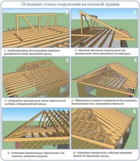 L'installation du système de chevrons est effectuée strictement selon le schéma développé. En règle générale, ces travaux commencent par l'installation du Mauerlat et se terminent par l'installation des vers, qui sont allongés par la pouliche au stade final.
