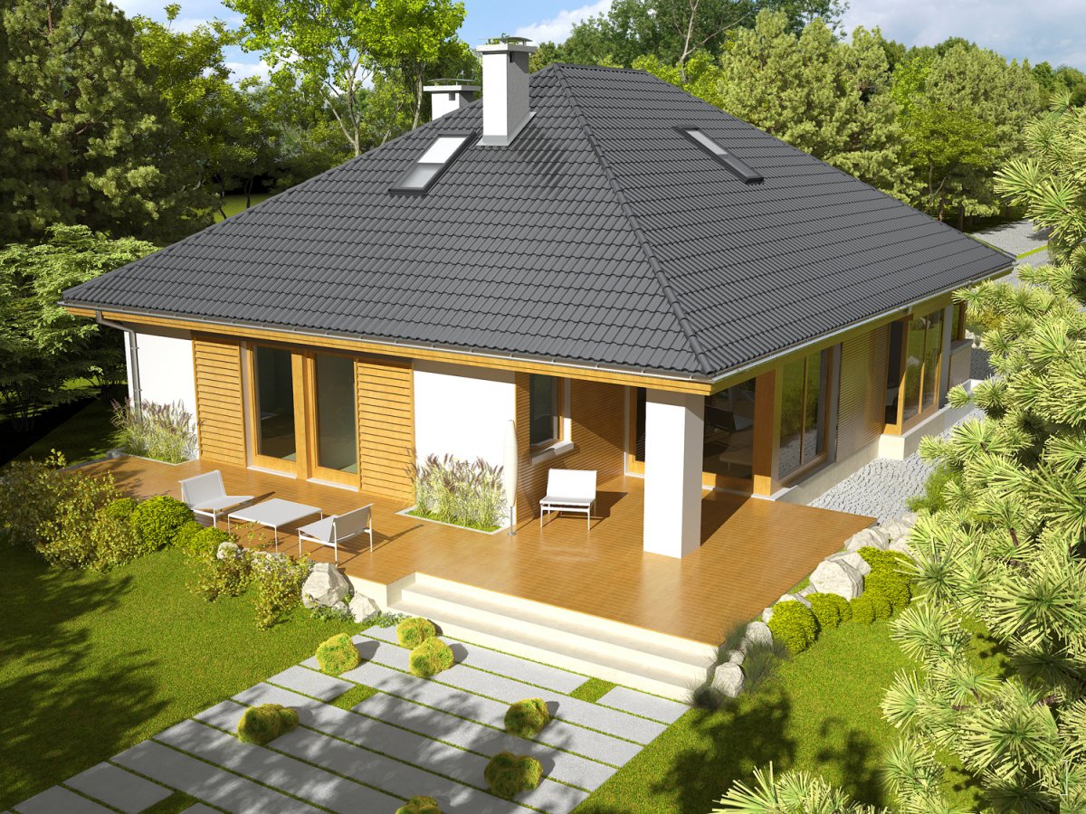 - De grands surplombs pouvant être installés sur tout le périmètre du toit en croupe protégeront de manière fiable la façade du bâtiment contre l'humidité.