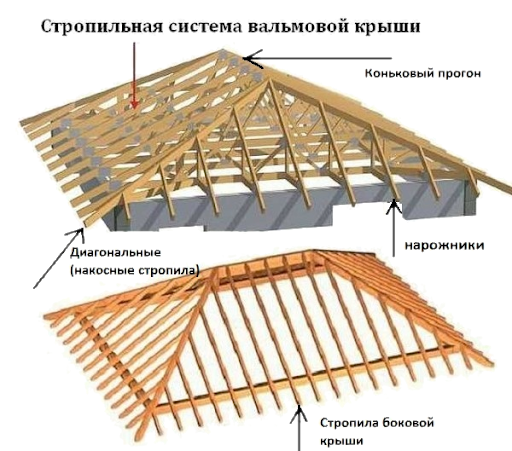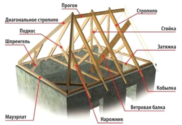 Dans le cas général, un toit en croupe est un système de chevrons à quatre pentes, dans lequel les pentes d'extrémité (courtes) ont la forme d'un triangle et les plus longues ont la forme d'un trapèze ou d'un triangle. Et si les pentes adjacentes de ces toits sont limitées par des nervures inclinées avec un angle externe, elles sont appelées hanche.