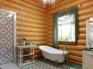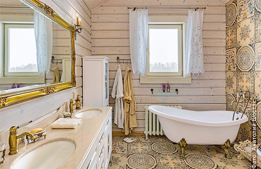 Une salle de bain dans une maison en rondins est conçue de la même manière que dans une brique. Recommandations :