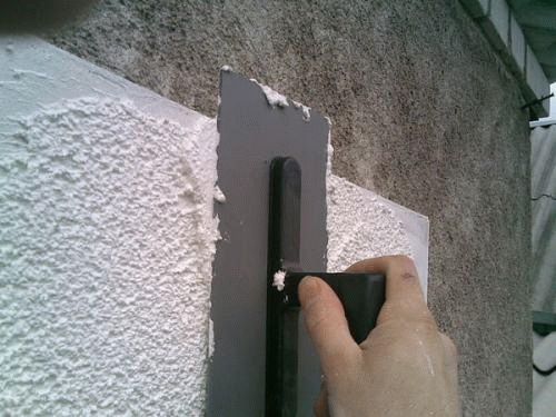 Vous pouvez combiner le mastic avec une feuille de mousse isolante. Pour ce faire, une composition adhésive pour ciment est appliquée sur les ébauches découpées, elles sont mesurées sur la pente et nivelées avec un niveau de construction. Une perceuse avec une buse convient pour préparer la colle. Après séchage, les pièces sont fixées avec des chevilles. Ensuite, la première couche de mastic est appliquée et un treillis en fibre de verre pré-préparé pour le renforcement, découpé selon les dimensions de la pente, est placé sur le dessus. Il est pressé vers l'intérieur puis le mélange est à nouveau appliqué en manipulant la spatule jusqu'à ce que la composition recouvre la structure. Pour éviter le rembourrage des côtés, des coins métalliques sont montés.La surface est recouverte de la dernière couche de mastic, après séchage de laquelle le coulis est effectué et la peinture est appliquée.