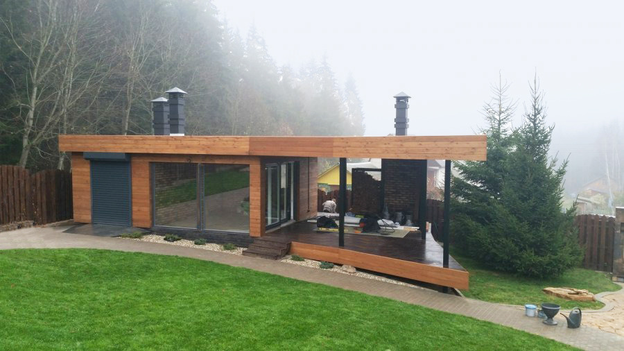 Les toits droits avec une légère pente sont faciles à réaliser, mais rarement érigés. L'appartement de type est réalisé sur les dépendances du garage, dépendance. La véranda d'entrée est généralement décorée d'un toit en pente.