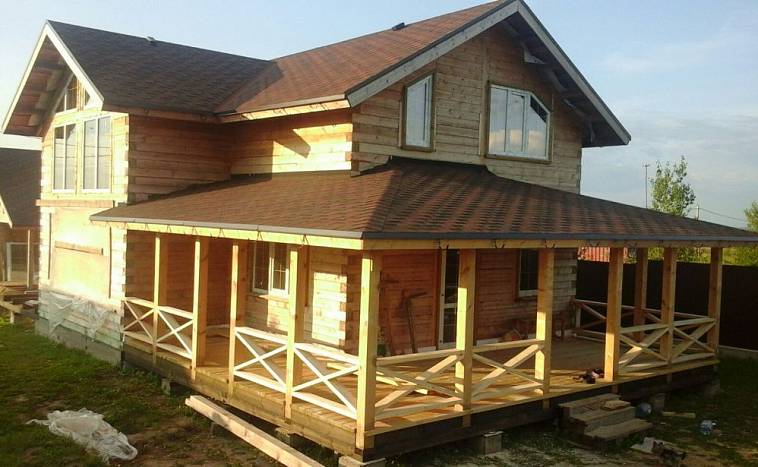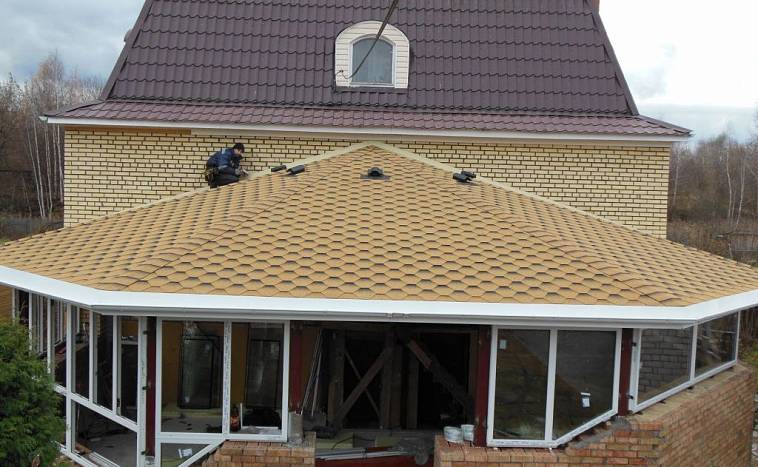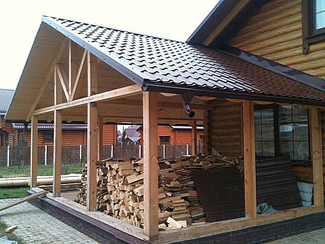 La conception de la jonction est pensée à l'avance, avant de réaliser un toit sur la véranda attenante à la maison. L'extension du toit est prévue pour être mobile, mais étanche aux précipitations et à l'humidité. Le pas standard des chevrons varie de 0,9 à 1,0 m, ils sont parfois installés plus souvent si la structure du toit est lourde.