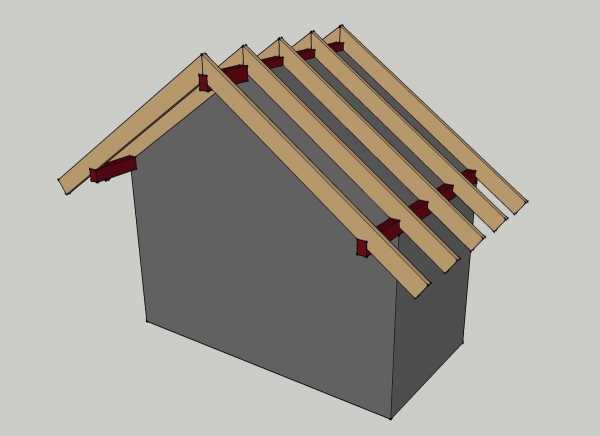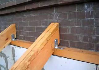 Le fronton du toit attenant à la maison repose sur des poutres qui sont fixées au mur. Pour cela, des coins métalliques ou des barres en bois d'une section d'au moins 75 x 100 mm sont utilisés. Pour la fixation, des chevilles avec des vis autotaraudeuses sont utilisées et les pièces en bois sont reliées entre elles par des supports, des clous, des goupilles métalliques, des boulons et des écrous.