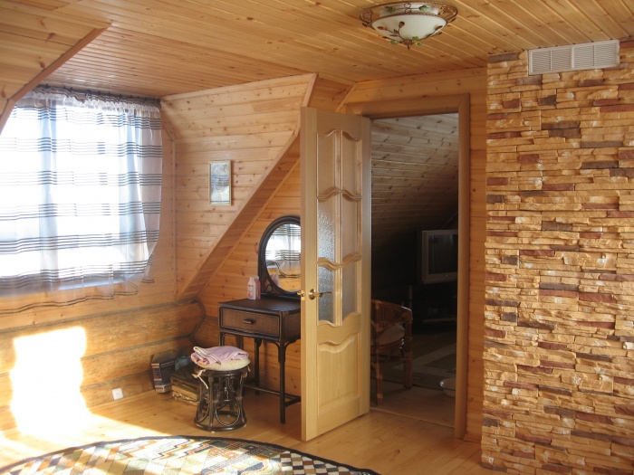 La décoration intérieure d'une maison en rondins destinée à l'habitation est réalisée avec des produits naturels ou des matériaux artificiels sans danger pour la santé.