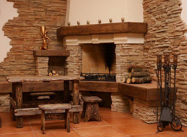 Le plus souvent, dans la décoration des maisons en bois, on utilise de la pierre artificielle décorative, qui se présente sous la forme de plaques de formes diverses.