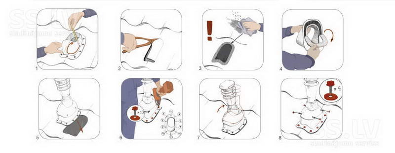 - un mastic est appliqué à la partie inférieure du pli passant et l'élément est fixé à la base avec des vis autotaraudeuses;