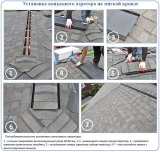 La taille des éléments diffère selon le type de revêtement, ainsi que leur nombre pour différents matériaux de toiture. Les plaques sont placées par incréments ne dépassant pas 12 mètres dans les zones élevées des pistes. Dans les toits avec une pente de 15 à 45 °, des passages spéciaux sont prévus - des évents de faîte, des aérateurs sont montés dans de tels évidements.