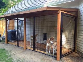 Des zones clôturées sont aménagées à côté ou autour des maisons pour protéger l'animal de la neige, de la pluie et du soleil. Les dimensions sont faites pour que le propriétaire puisse entrer librement dans la volière.