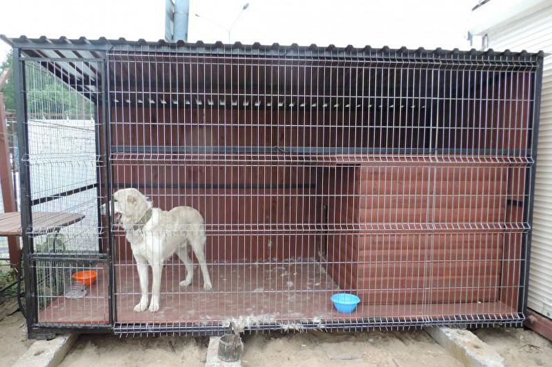 Lors du choix d'un design, assurez-vous de prendre en compte la race de chien qui est censée être conservée dans la volière. La sécurité de l'animal et des personnes, la durabilité de la structure, dépendent de matériaux de construction correctement sélectionnés.