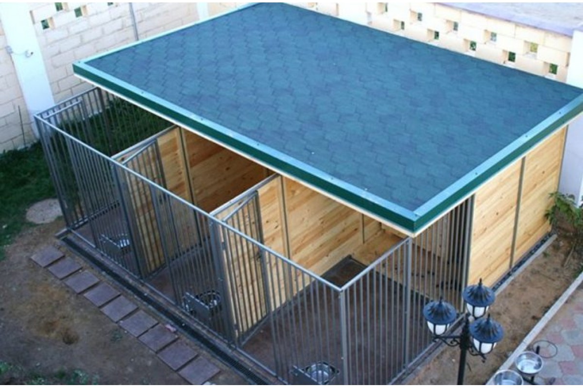 Si la volière est destinée à plusieurs chiens, 3 à 4 m² supplémentaires sont alloués à chacun, des sections séparées sont prévues pour les grandes races.