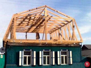 - Les pièces d'extrémité sont montées. Ensuite, ils sont reliés par des poutres longitudinales. Ce dernier devra alors être équipé d'un système de chevrons. Aux endroits où il est prévu d'installer des fenêtres, des poutres verticales sont placées.