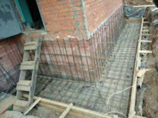 De plus, seuls les coins peuvent être renforcés. Cette méthode convient si l'étage supérieur est prévu pour être réalisé sous la forme d'un cadre léger.Les angles sont creusés dans 1 m de diamètre sur une profondeur de 50 cm. Une grille est soudée aux tiges de la fondation précédente et l'espace libre est coulé avec du béton.