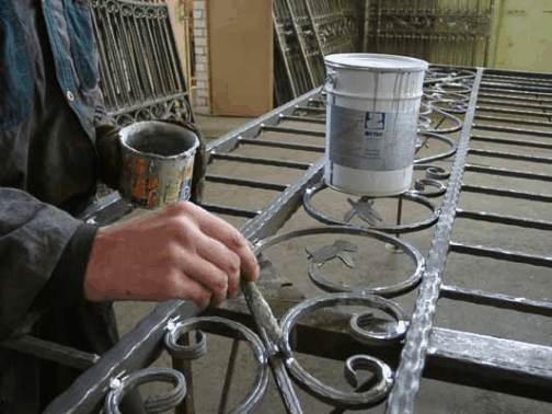 Les matériaux de peinture sont utilisés pour les surfaces exposées ou déjà affectées par la rouille. La peinture au marteau protège le revêtement forgé et une clôture en tôle profilée ou en fonte prend un aspect unique. La surface des produits reçoit également les propriétés suivantes :
