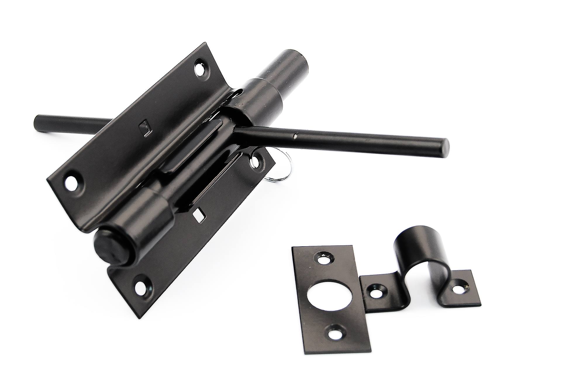 - Les loquets sont des dispositifs mécaniques ou semi-automatiques.Le corps de travail est une plaque métallique avec une béquille. Lorsqu'elle est fermée par ressort ou par gravité, la vanne tombe dans la rainure du percuteur. Pour ouvrir, appliquez une force sur le levier et soulevez la plaque de verrouillage ou utilisez la poignée pour retirer le boulon de la rainure. Les loquets peuvent être autobloquants ou manuels.